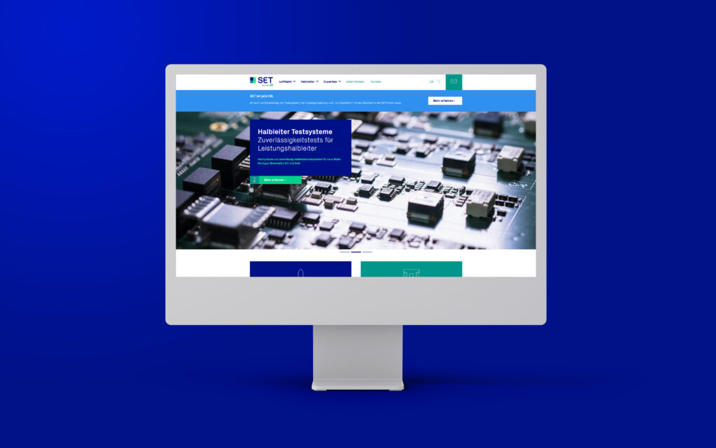 Die Struktur wird insbesondere auf der neuen Website deutlich. Das einheitliche Farbraster und die kubischen Formen des neuen Logos werden hier konsequent durchdekliniert. Dadurch führen sie den User intuitiv durch Navigation und Inhalte. Eine präzise Ikonografie schafft zusätzliche Orientierung und setzt die drei Kernfelder der SET immer wieder deutlich in den Fokus.